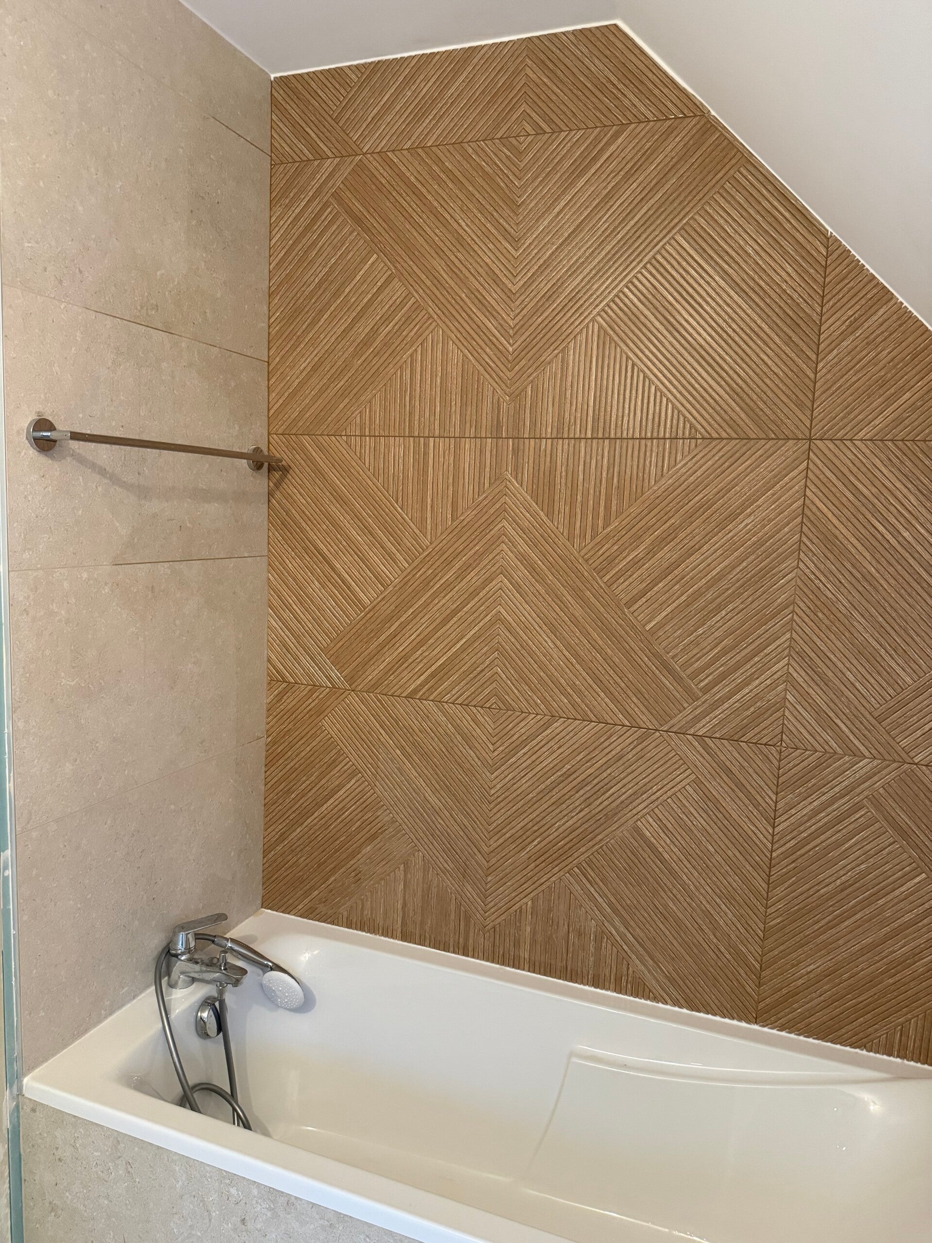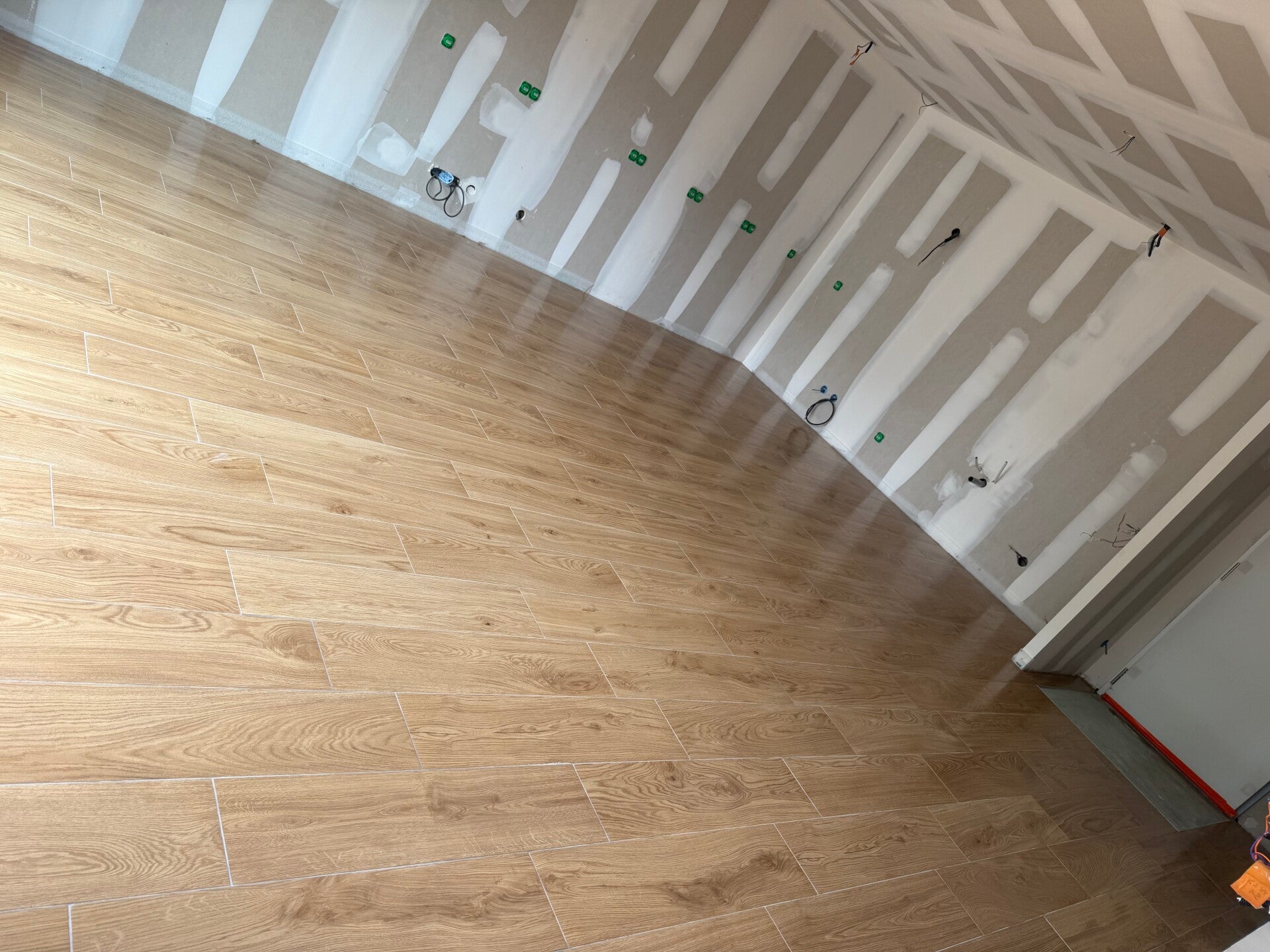 Explorez notre galerie de projets emblématiques. Chaque image témoigne de notre maîtrise technique et de la qualité de notre travail, notamment dans la pose délicate de carrelage imitation parquet qui apporte chaleur et modernité, ainsi que la précision requise pour les petits formats. Nous relevons les défis avec ingéniosité pour un résultat qui dépasse vos attentes.