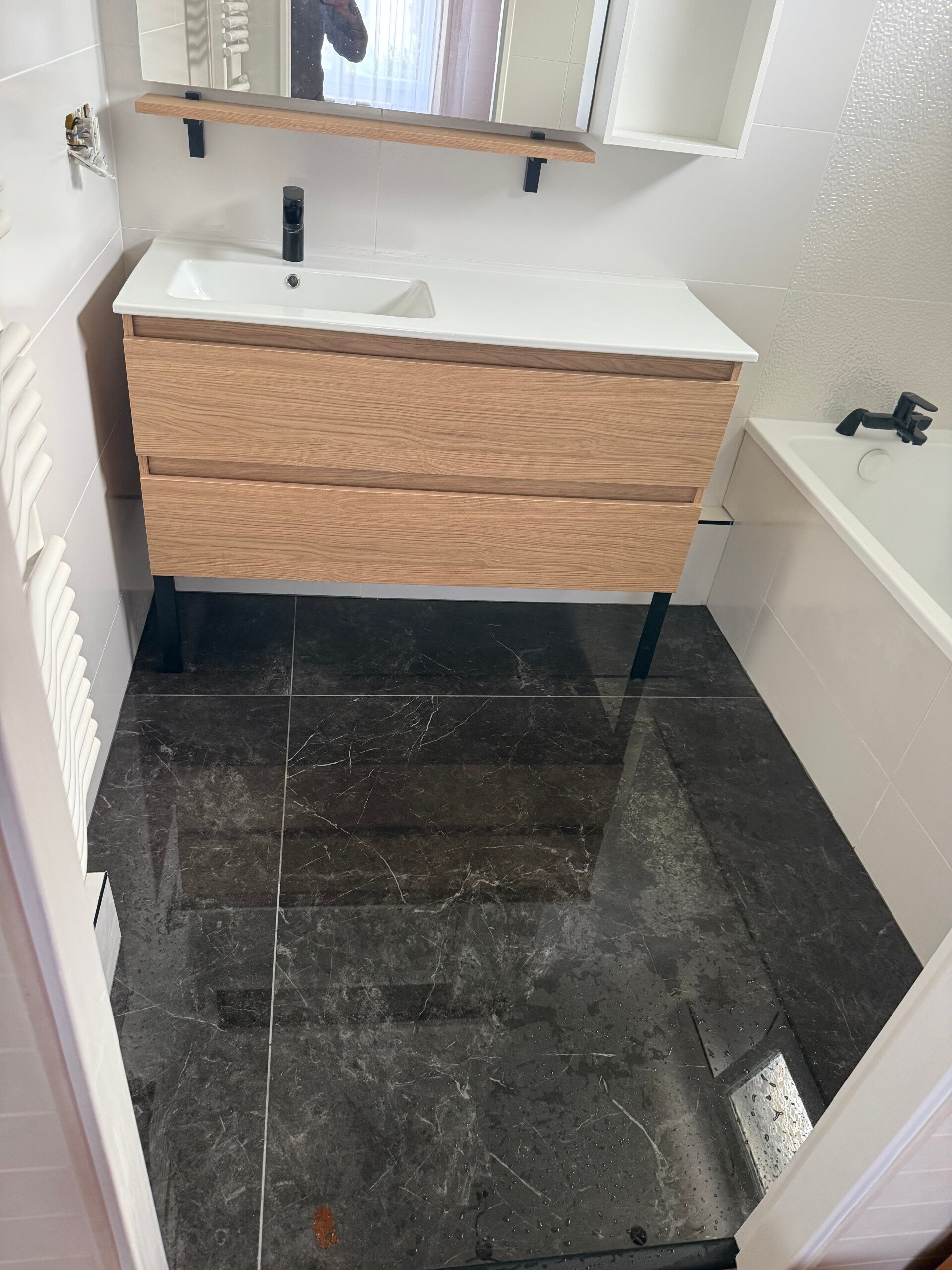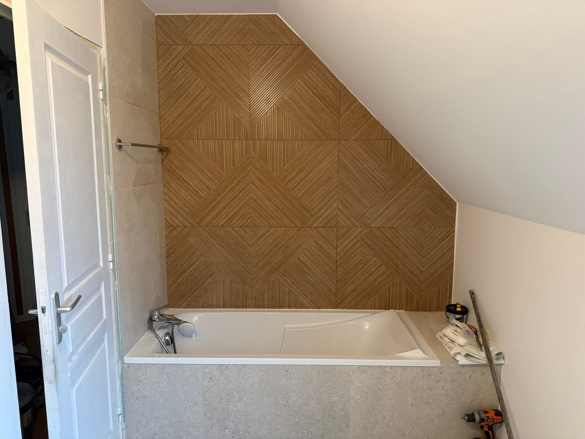 Chez MF Carrelage, situé à Andard, nous sommes fiers de chaque projet réalisé. Découvrez ici les chantiers de rénovation qui illustrent le mieux notre passion et notre expertise. Nous mettons un point d'honneur à offrir une qualité de travail irréprochable et un accompagnement personnalisé pour concrétiser vos projets de carrelage, qu'il s'agisse de pose de carrelage imitation parquet ou de petits formats.